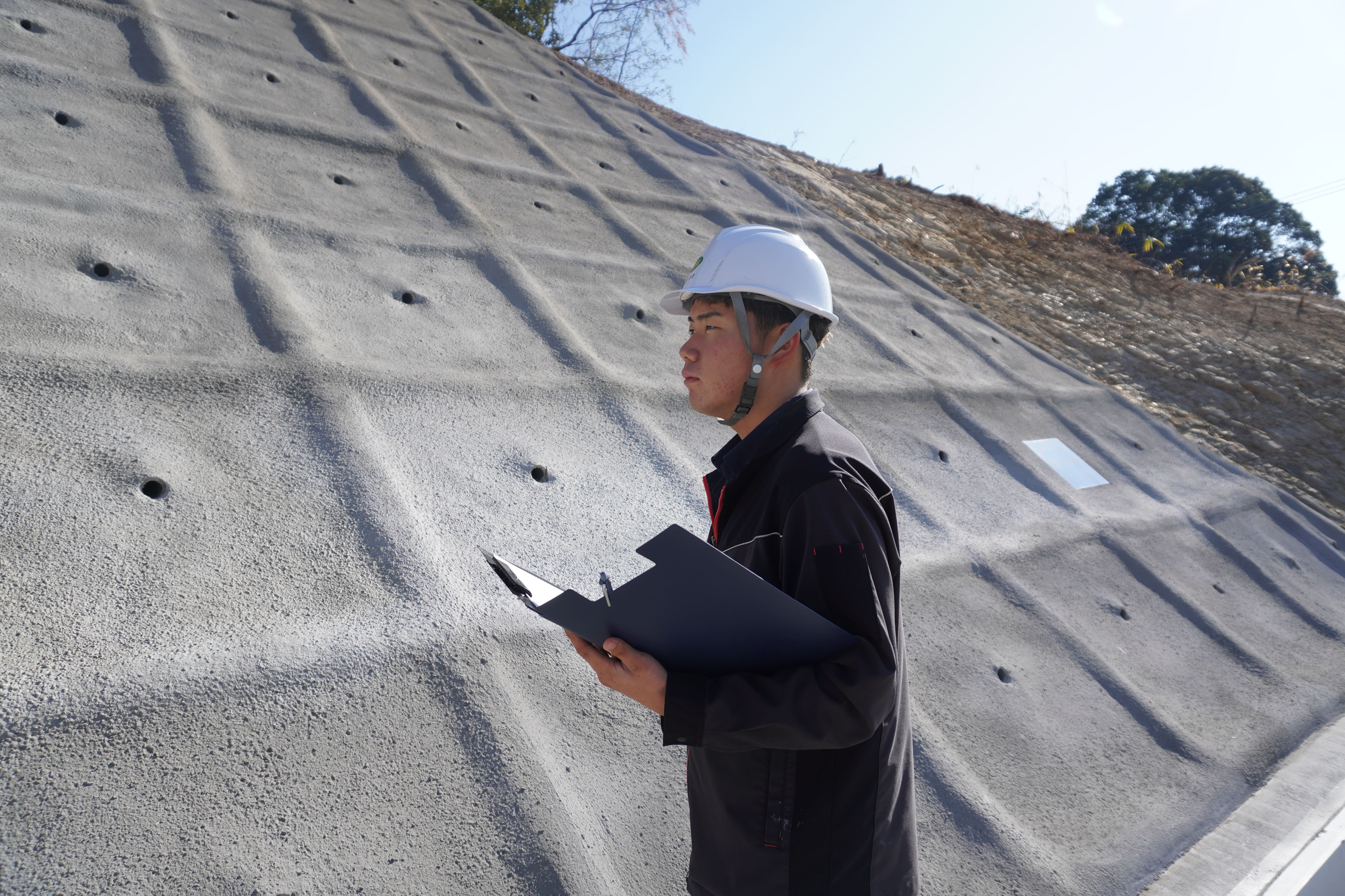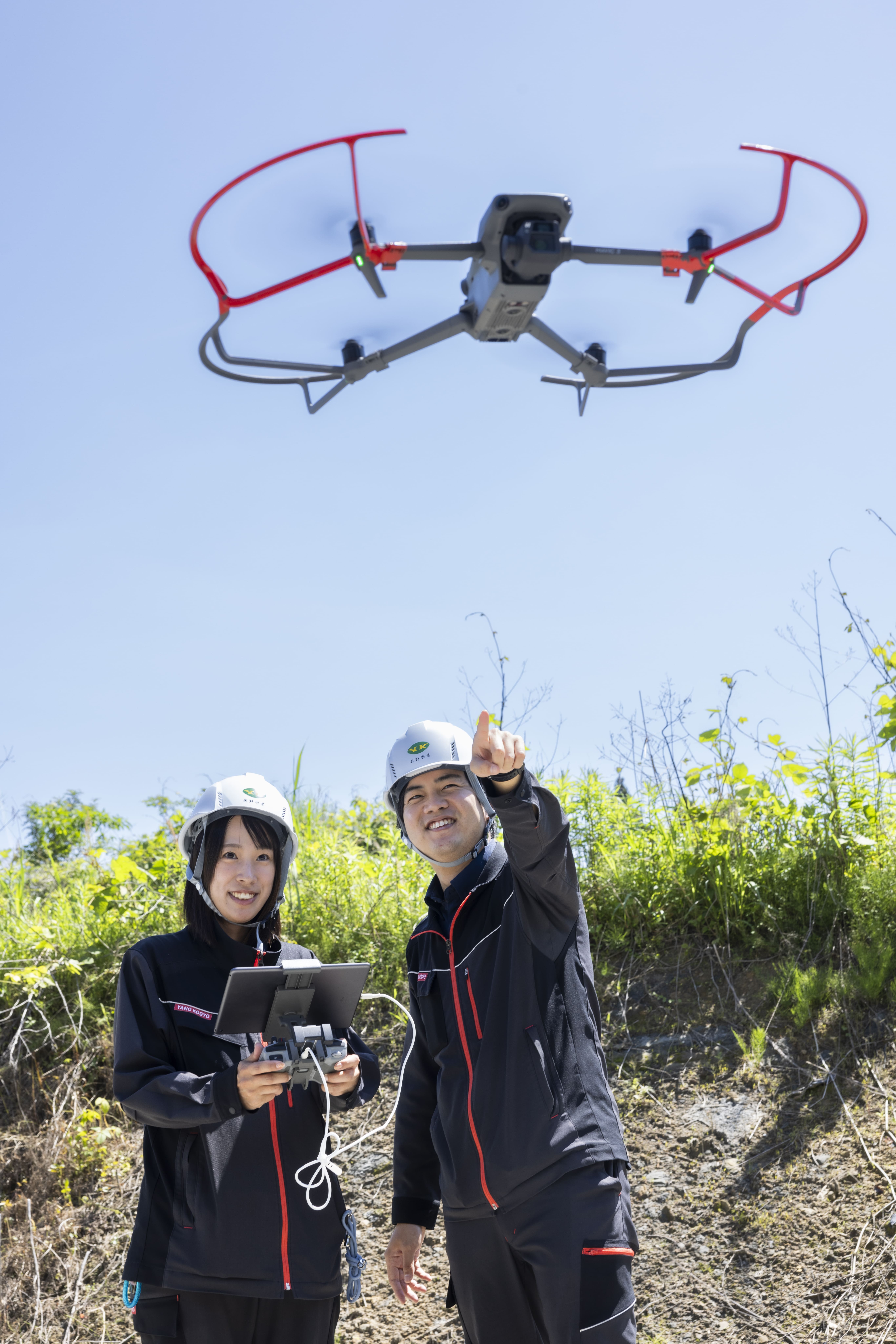 実績面においても、宮崎県民の暮らしに密着した多種多様な建設プロジェクトを手がけてきました。県北地域でのトンネル工事や橋梁整備、市街地での舗装工事に加え、近年の大規模な台風災害における復旧工事など、私たちの技術は安心・安全な地域インフラをつくり、守るために発揮されています。また、ドローンスクールを自社運営していることも特徴の1つ。従来は外部に頼っていたパイロットの育成や国家資格の取得を社内で行える体制を整えたことで、若手社員が最新技術を身につけるスピードも格段に上がりました。さらには「建設ディレクター」という、現場監督の事務作業を専門にサポートする新しい職種を導入。現場の負担を減らし、現場管理に専念できる新しいに仕事の仕組みづくりにも積極的に取り組んでいます。
