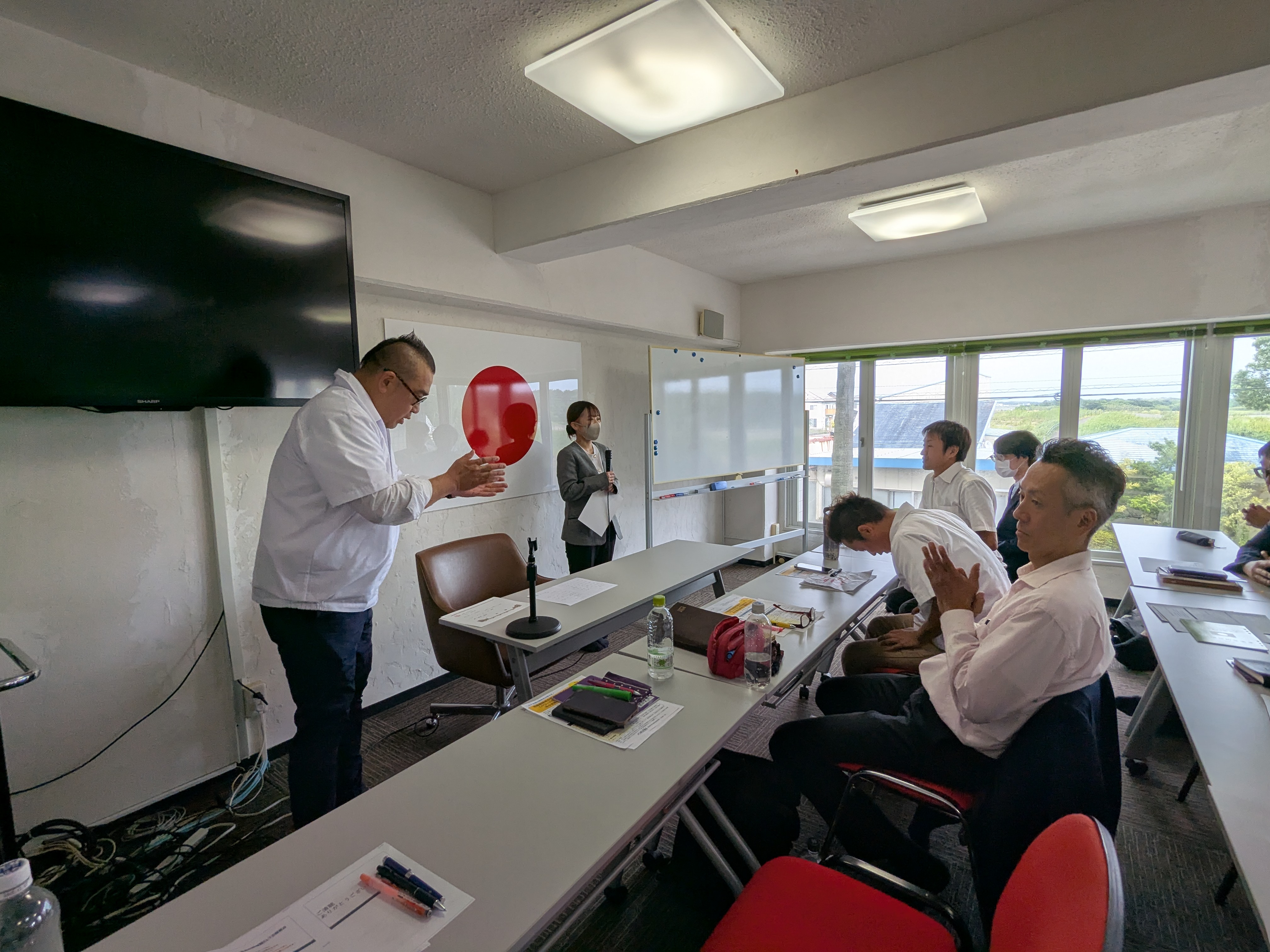社員の勤務地や勤務店舗はそれぞれ異なりますが、会社全体で目標や想いを共有し、仕事に向かう方向性を一致させるために、本社では週1回または隔週で研修会を開催しています。研修会は経営者による“ゼミナール”形式で行われ、若手社員でも会長や社長と直接会話や意見交換ができるのが特徴です。